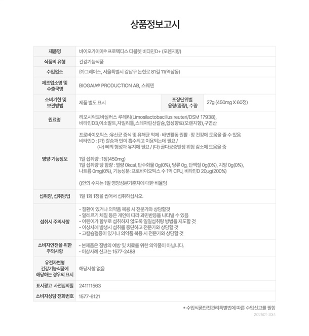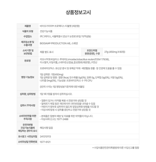 <제품별 유통기한>