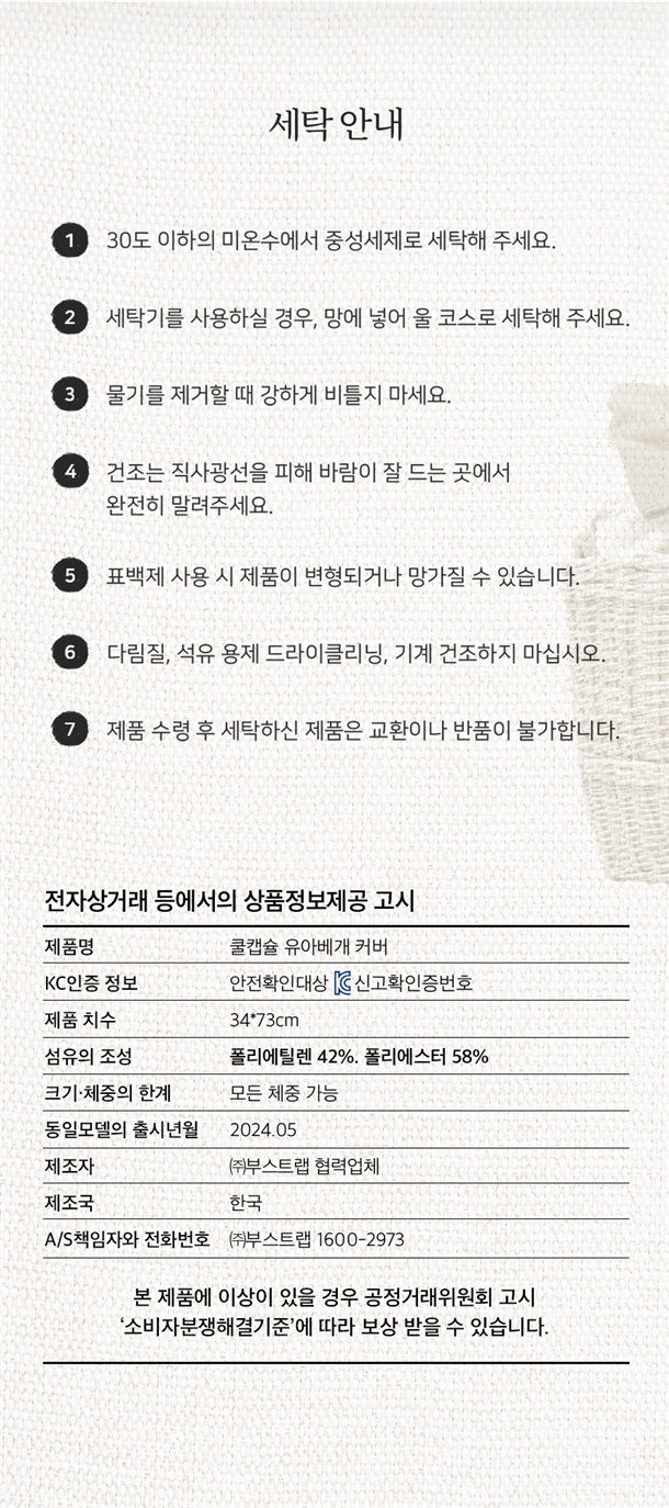 · 교환/반품 신청은 배송완료 후 7일 이내에 가능합니다.